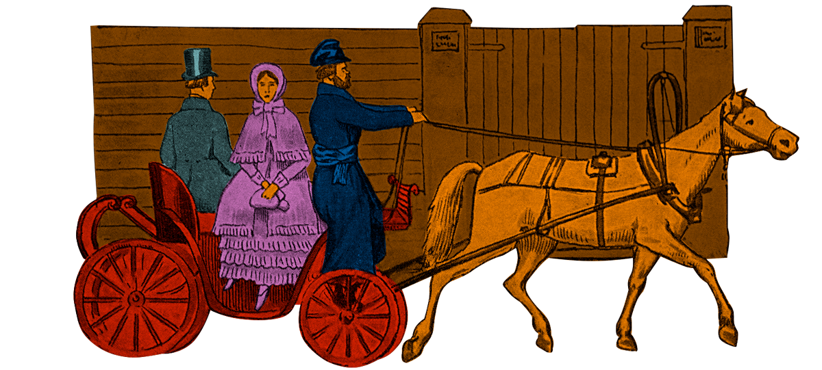 Популярными транспортными средствами Москвы в середине XIX века были конные экипажи: линейки и кабриолеты, последние в народе называли «калибрами». На кабриолетах пассажиры сидели боком в разные стороны, лицом к улице, а впереди сидел водитель-извозчик. Чтобы не упасть во время поездки, необходимо было балансировать и держаться не только руками, но и ногами. Стоимость поездки составляла 10-15 копеек, за которые можно было проехать 2-3 километра.