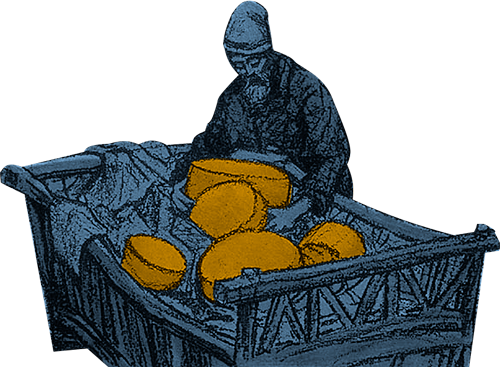 — Дяденька, у тебя пироги-то с тряпкой… — А тебе, каналья, что же, за 2 копейки с бархатом что ли давать?