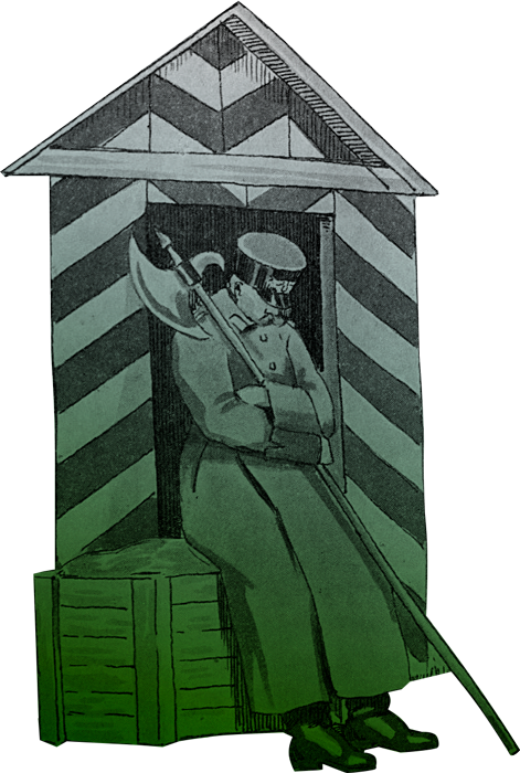 Московская городская полиция первой половины XIX века отличалась крутым нравом и видом. Облаченные в высокие шапки-кивера и снаряженные большими алебардами, полицейские дежурили в специальных будках на больших улицах, площадях и на бойких местах, за что назывались «будочники». Проходя ночью мимо таких будок, на грозный неизменный вопрос: «Кто идет?», следовало отвечать «обыватель», иначе можно было угодить в околоток. По свидетельствам современников, любимым досугом будочников в дневное время, было нюханье табака, куда они добавляли для крепости толченое стекло.