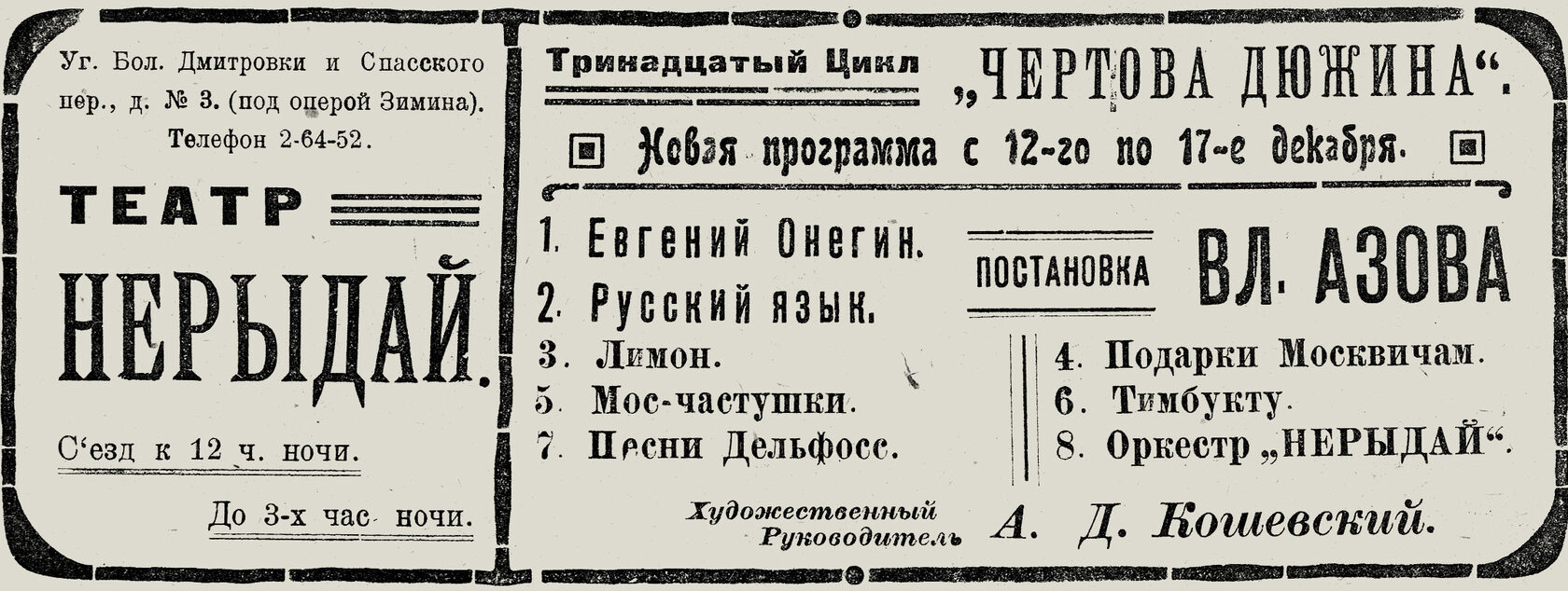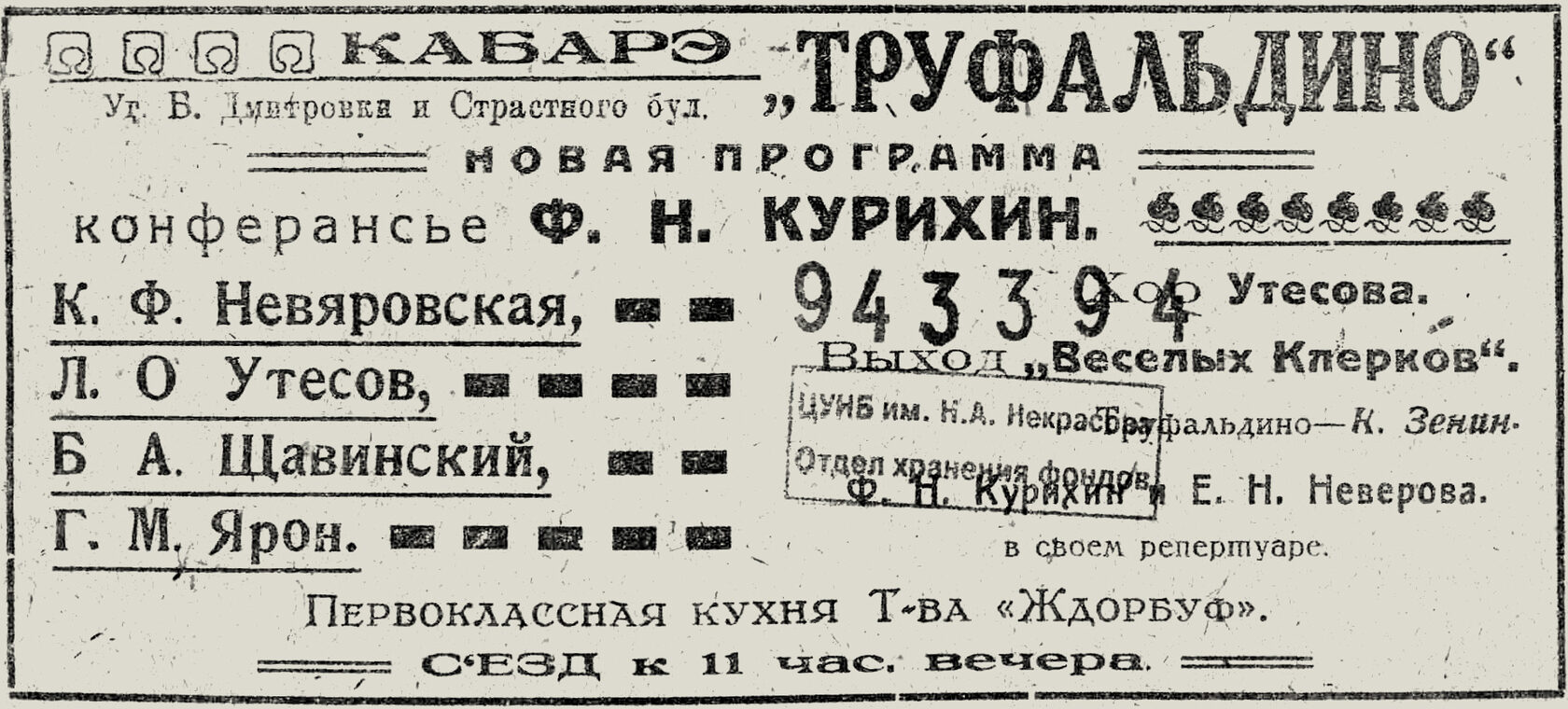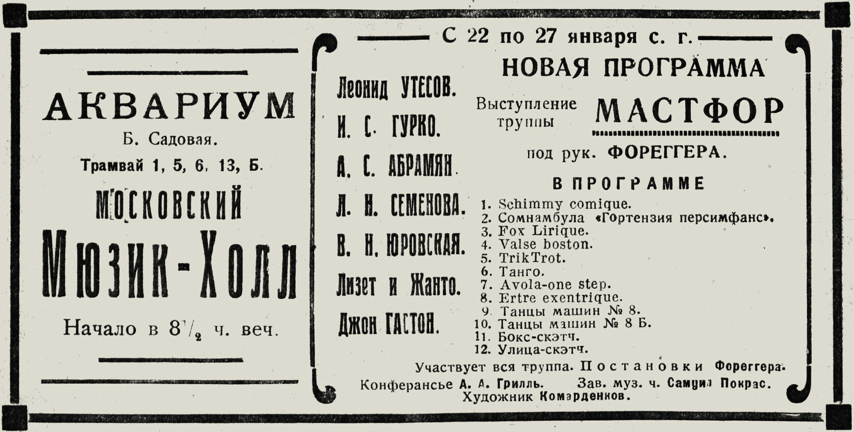 Если бы наш зрительный зал наполняли «великолепные аристократические бездельники», «звездоносные» начальники департаментов, «романтические» студенты и курсистки, то, конечно, никому в голову не пришло бы предлагать этой публике фокстроты, эксцентрические скетчи, «гротески» Чарли Чаплина.