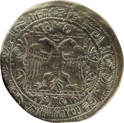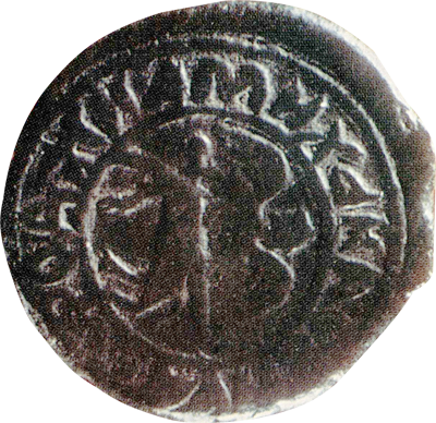 Серебряная денга и медное пуло великого князя тверского и городенского Ивана Михайловича. Чеканены в конце княжения. На обратной стороне обеих монет — крылатый кентавр.