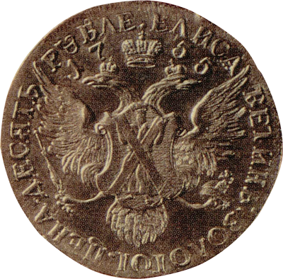 «Елисаветин золотой». Пробный империал (10 рублей) работы Бенджамина Скота, не получивший утверждения, и империал с портретом Елизаветы Петровны работы Жана Дасье, помещавшимся на монетах только 1757 года.