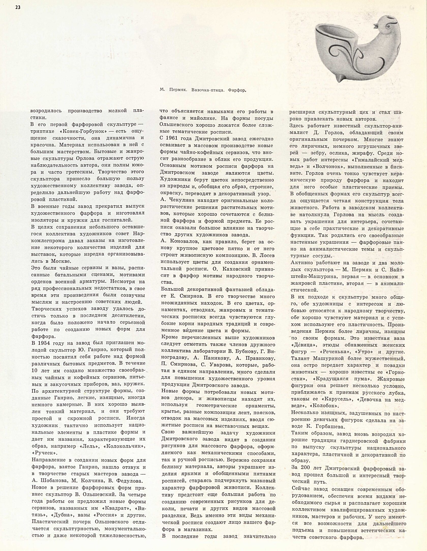 Публикуется по журналу «Декоративное искусство СССР», № 3, 1966